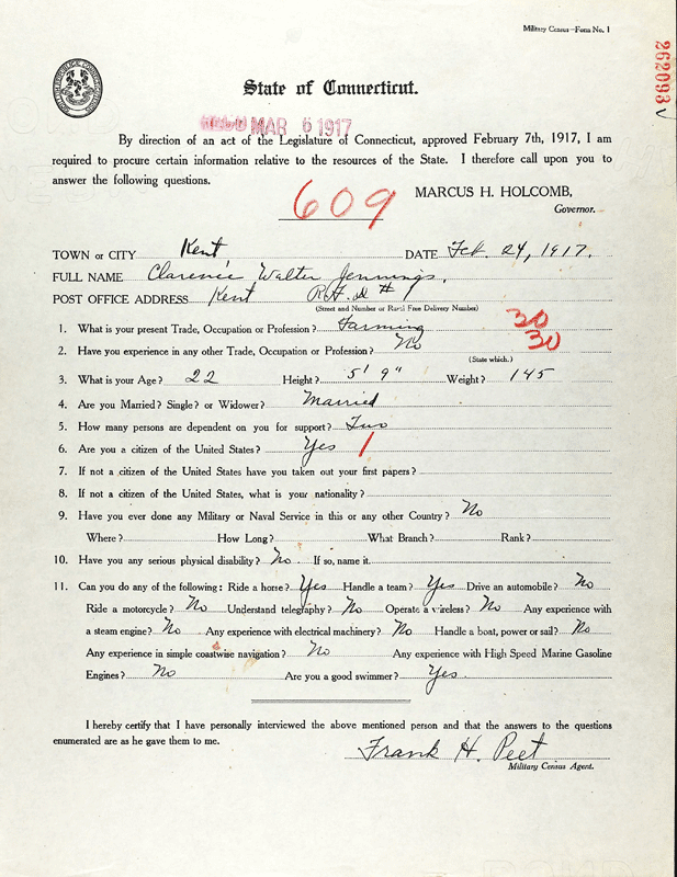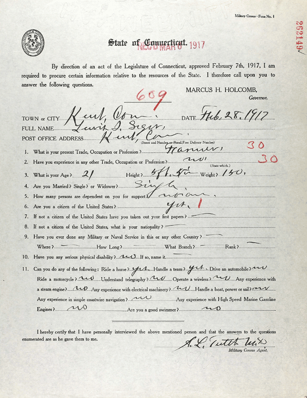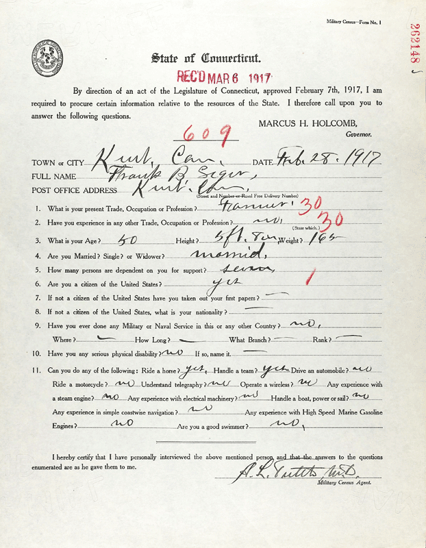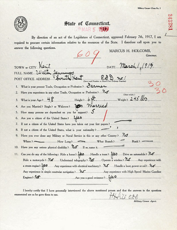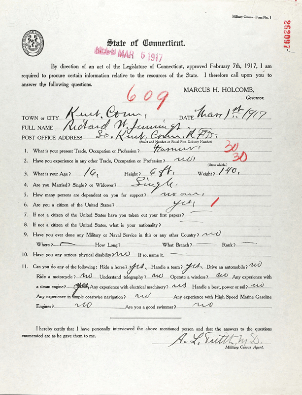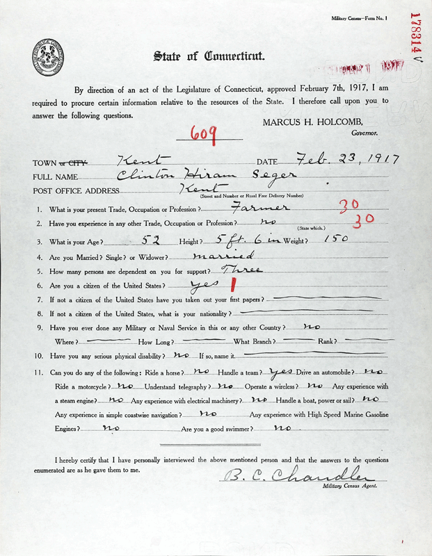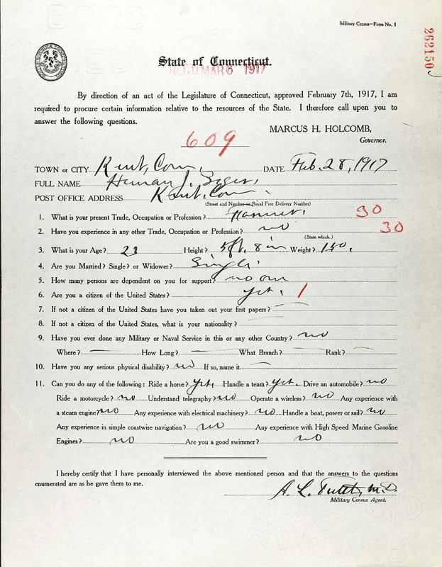 A database on Ancestry.com included a Connecticut military census that appears to have been given to every adult male who could theoretically be drafted for service in the World War, which the United States entered on April 6, 1917. These records were submitted a month before the official declaration of war. Of course we have no idea, at least at with currently available documents, what they thought of the war, then in its third bloody year, or the possibility of being called up. Dry data, except that I was able to learn the height, weight and stated skills of this generation of male relatives.