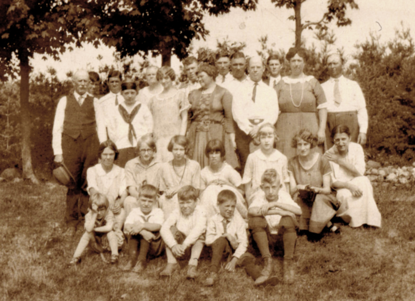 We have some photos of a reunion of the Seger and Sterry clan. Unfortunately, the photographer didn’t have a sense of how much glare he/she was dealing with, and many of the people in the back row are washed out. With a bit of help from Photoshop, we can now see more of the participants, and with the help of some detective work by Roscoe Seger’s granddaughters, can identify some of them, and tentatively label others. Further input would be most welcome.