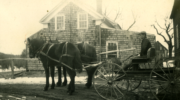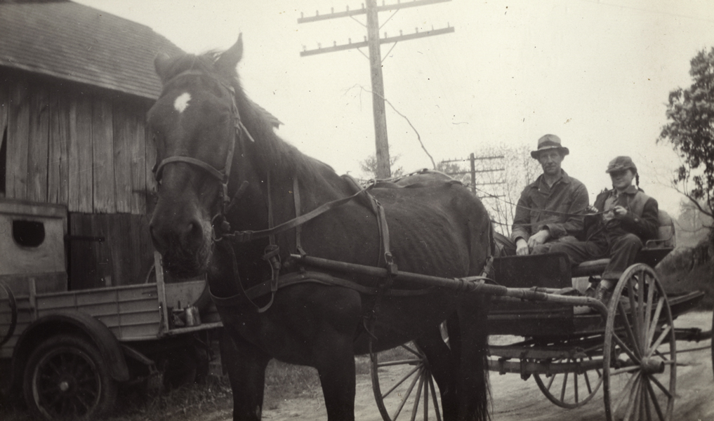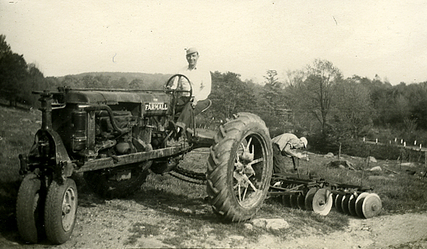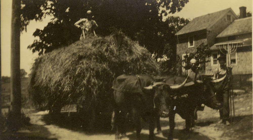 Mechanization came late to the farm. While a traction engine made its appearance and is noted in Frank’s diary in 1915, the family continued to use horses and oxen into the 1940s. Electricity came in 1934 during the great drive for rural electrification.