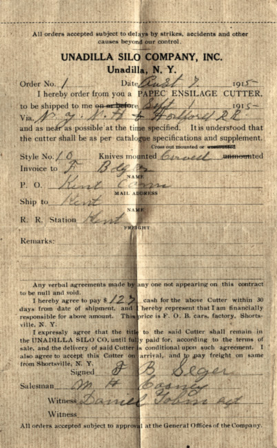 The Segers also earned money as teamsters, hauling charcoal and iron during the mining boom, and in Frank’s day jobbed themselves and their oxen out to the Town of Kent. After haying was finished in the latter part of the summer, nearly every weekday entry in Frank’s 1915 diary notes that he or at least one of his sons and a team worked for hire on road building.