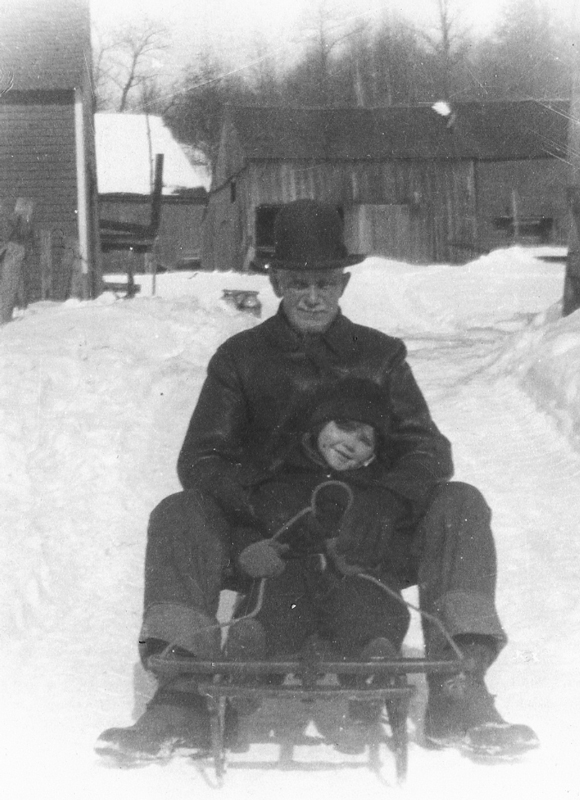This photo particularly intrigued me. In the winter ice had to be cut from lakes and stored in ice houses for year-round refrigeration. It was a source of cash for many of the small farms, and almost every able-bodied man went out to help cut and haul ice. The farmhand in this photo is piloting a rig he invented and used to get around on the ice.